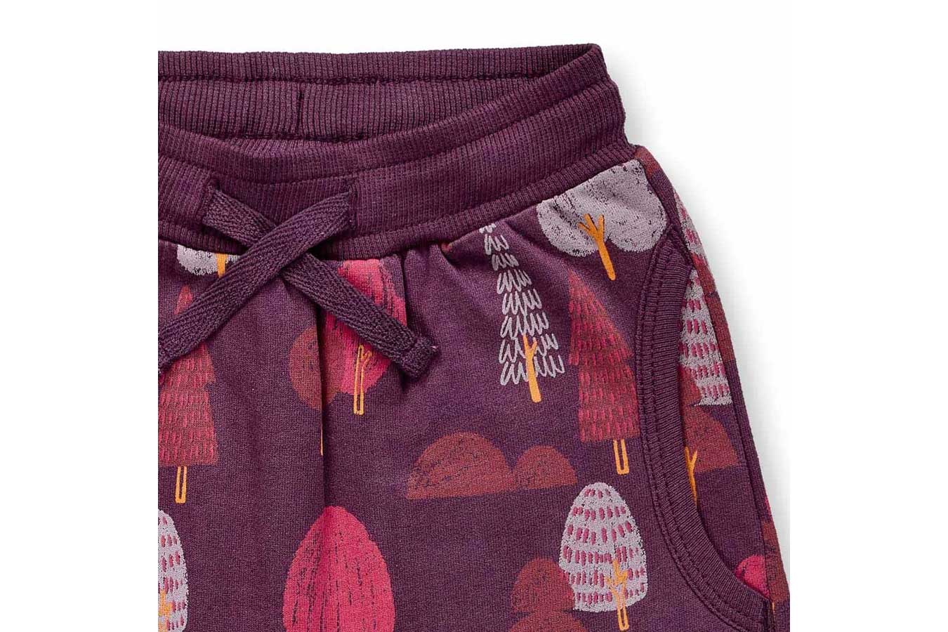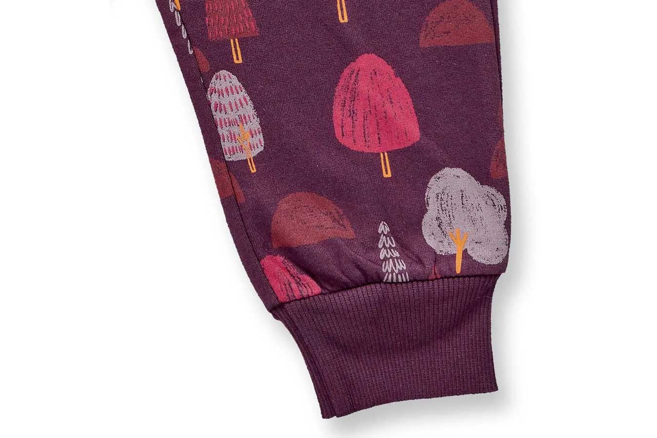 Der elastische Bund und die praktische Kordel sorgen dafür, dass unser Modell NEVIN immer super sitzt, egal ob beim Kuscheln, Spielen oder auf Entdeckungsreise. Mit dem Baumdruck auf pflaumenlilafarbenem Hintergrund wird die Hose zum echten Hingucker im Kleiderschrank deines Babys. Die langen Beine mit Bündchen bleiben auch bei ersten Krabbelversuchen und wildem Strampeln genau dort, wo sie hingehören. Dein Kind hat durch die gemütliche Weite alle Bewegungsfreiheit für tägliche Abenteuer. Unser Modell NEVIN besteht aus weichem Sweatstoff, der sich angenehm auf der Haut anfühlt. Die Bio-Baumwolle sorgt für ein natürliches Tragegefühl. Die Eingriffstaschen an den Seiten bieten Platz für kleine Entdeckungen.