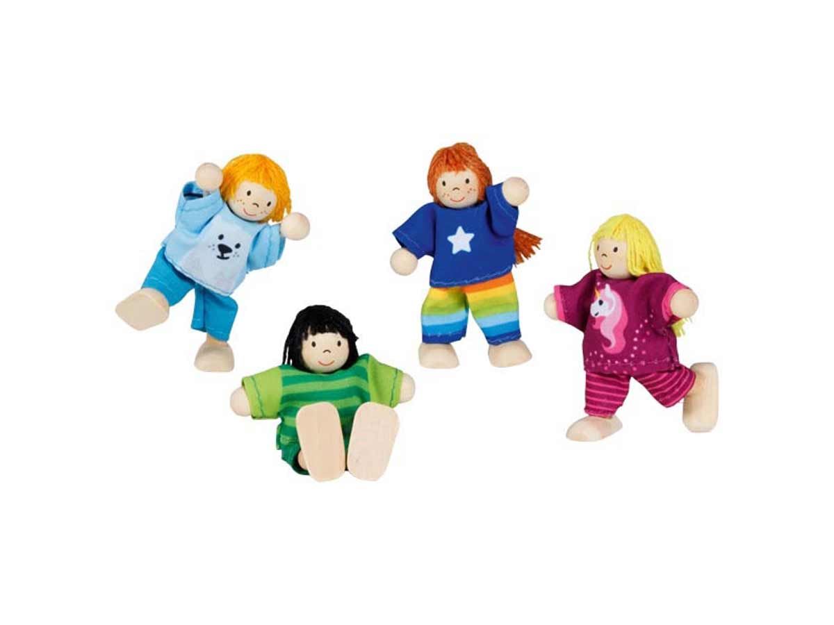 Die hölzernen Puppen sind leicht beweglich. Sie können sitzen und stehen und machen das Spielen so lebendiger. Sie passen zudem in alle goki-Puppenhäuser.