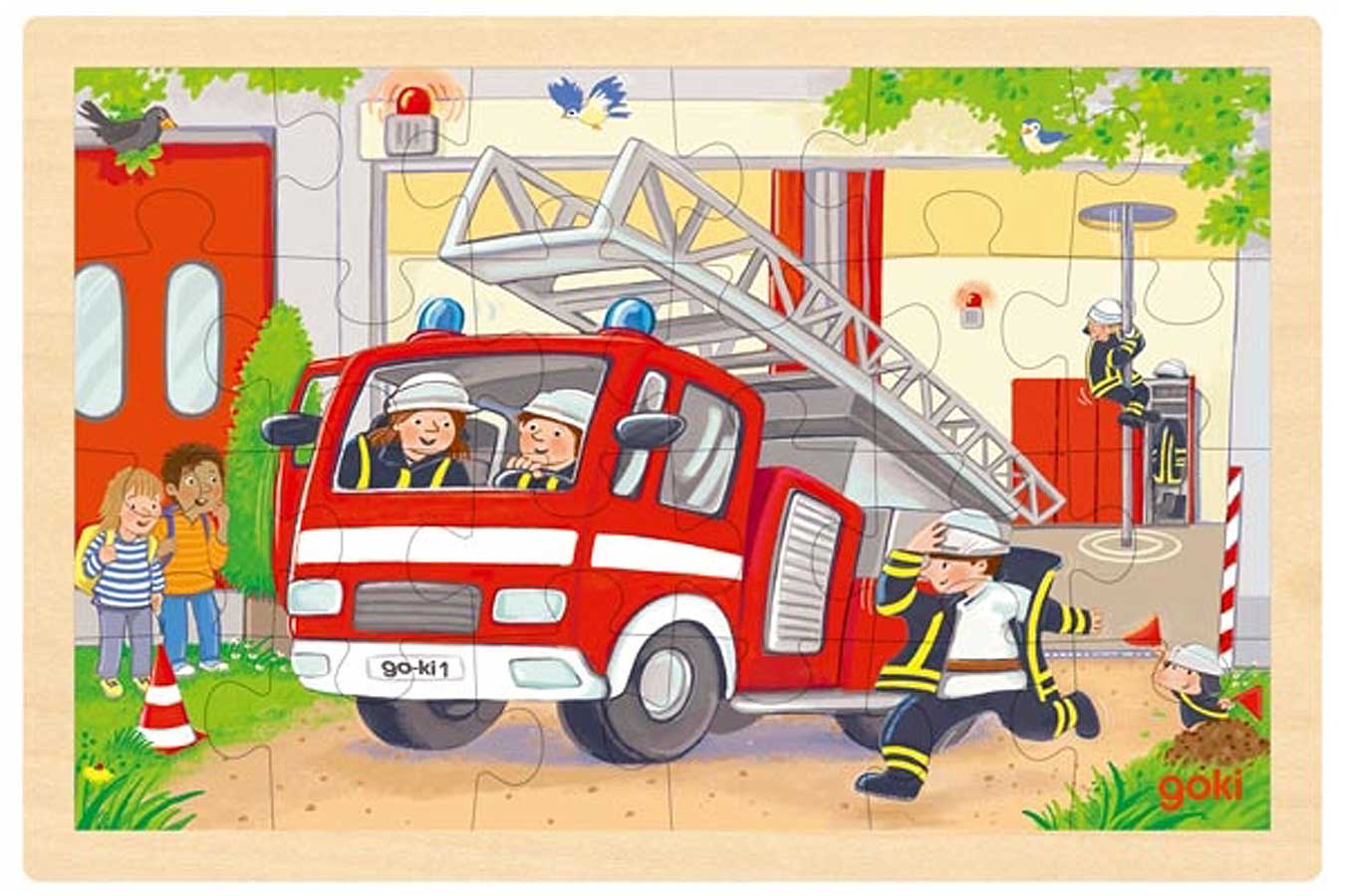 Goki bringt den doppelten Puzzlespaß ins Kinderzimmer. Dank innovativer Technik und bester Holzqualität realisiert goki die Bedruckung beider Puzzleteilseiten! Das spart Holzressourcen, verdoppelt die Puzzlefreude, erhöht die Herausforderung und macht das Puzzeln so günstig wie nie zuvor. Was jedoch in erster Linie für die Kinder zählt, sind die beiden hochattraktiven, handentworfenen Motive moderner Rettung zu zulande und aus der Luft. Mit so viel Liebe zum Detail, ausdrucksvoll und kindgerecht wurden die beliebten Motive Rettungshubschrauber und Feuerwehr selten zuvor umgesetzt.