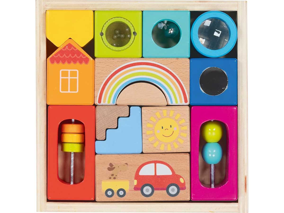 Sehr schön sortiert eingeräumt in einem passenden Holzrahmen macht dieses vielseitige Spiel als Geschenk sehr viel her. Zum 1. Geburtstag geschenkt haben auch die kleinen Gäste des Geburtstagskindes Spaß damit.