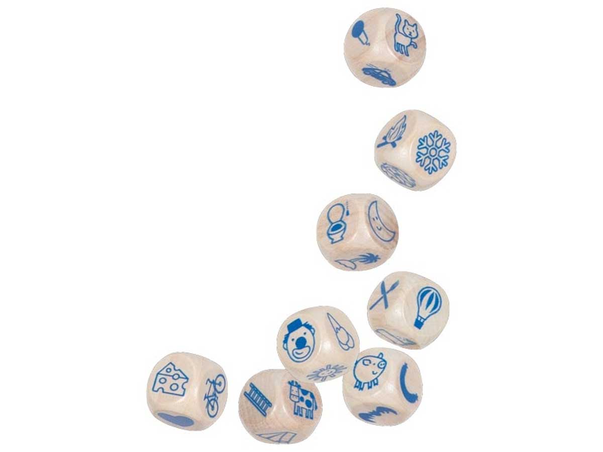 Es war einmal ein Löwe, der traf auf einen Außerirdischen und ging mit ihm zelten. So oder so ähnlich könnte eine Geschichte beginnen, zu der Ihr Kind mithilfe unserer Geschichtenwürfel inspiriert wurde. Das Set aus neun Holzwürfeln zeigt unterschiedliche Motive, die beliebig sortiert werden können. Die gewürfelten Motive dienen dann als Grundlage für märchenhafte, gruselige oder lustige Geschichten.