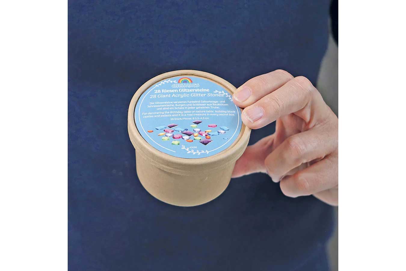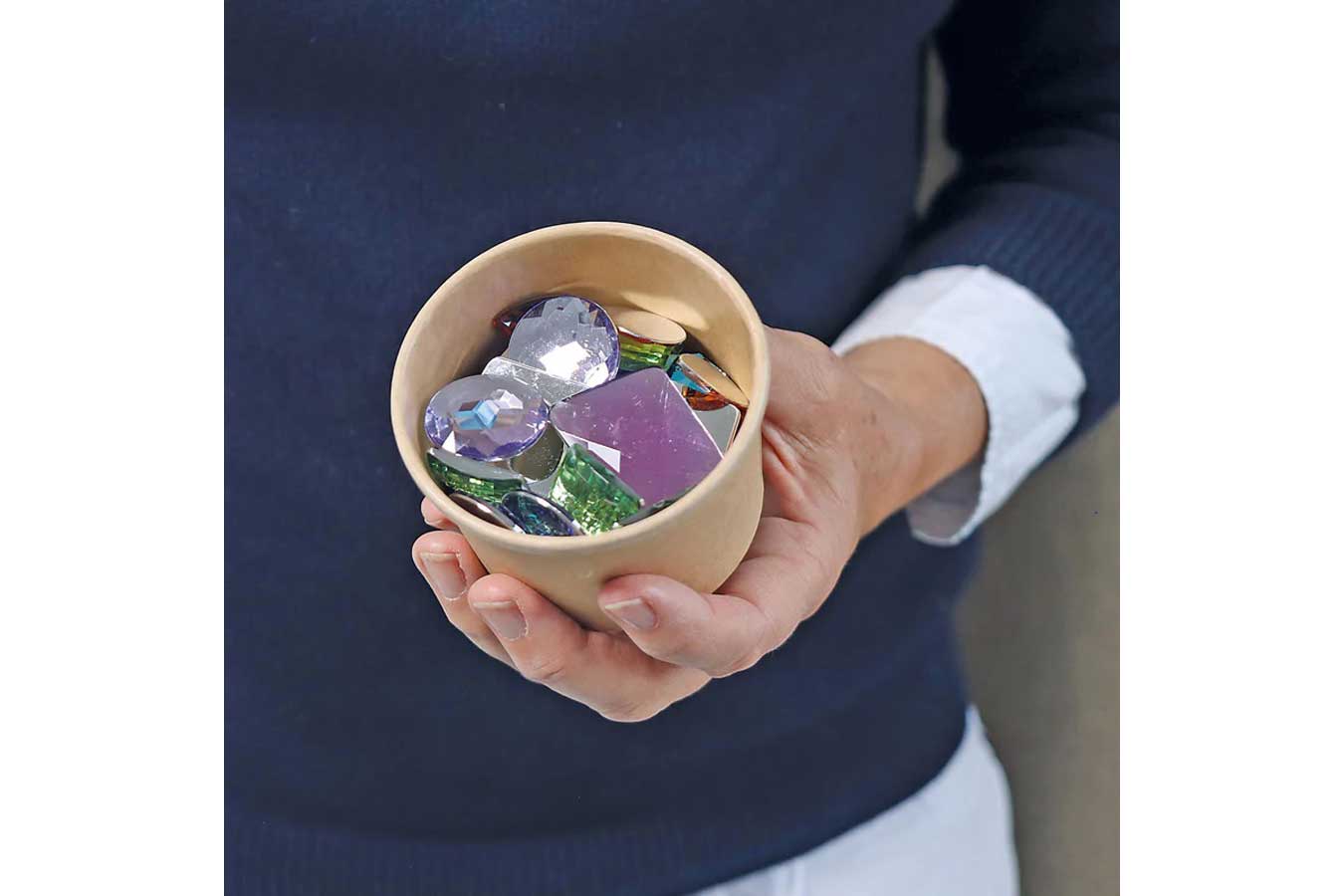 Diese Glitzersteine verzieren funkelnd Geburtstags- und Jahreszeitentische, Burgen und Schlösser aus Bauklötzen und sie sind ein Schatz in jeder geheimen Truhe. In Palmblattschälchen.