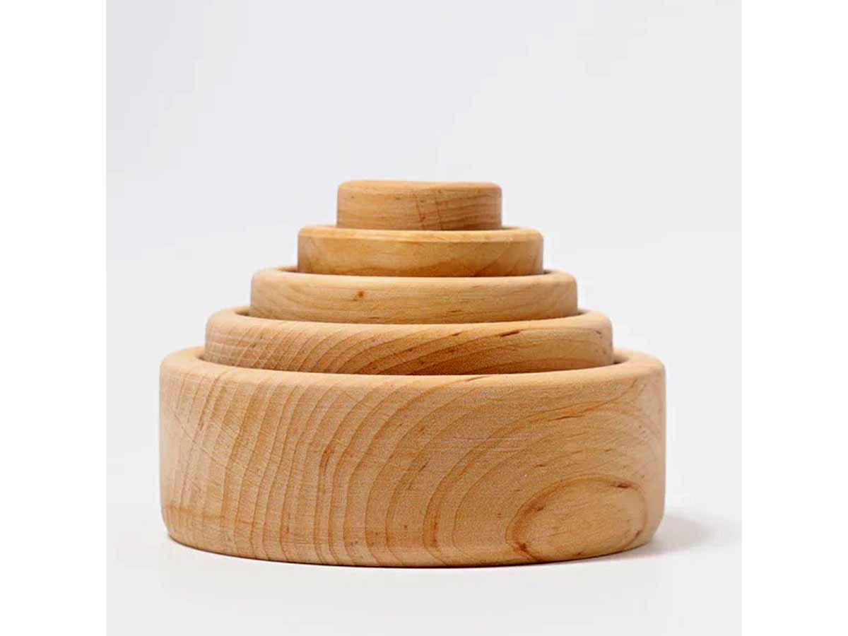 Der Schälchensatz ist ein vielseitiges Spielzeug für das Kinderzimmer: zum Stecken und Sortieren, Stapeln und Bauen, Kochen und Sammeln, als Kochtopf oder Teller… und und und. Für ein fantasievolles Spiel! Der Schälchensatz ist ausgezeichnet mit dem »spiel gut« Siegel. 5 Teile. Holz: Erlenholz geölt. Maße: Durchmesser 11cm.