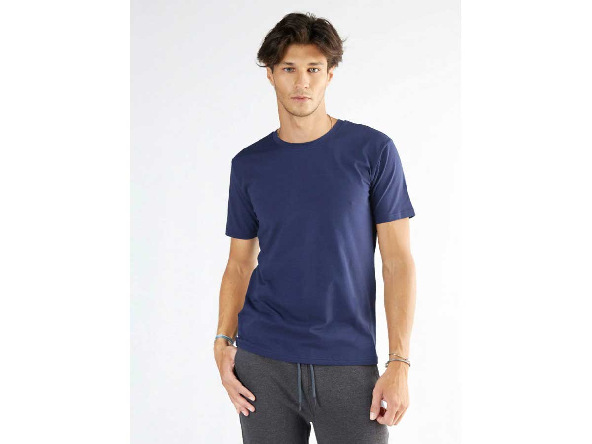 Gerade geschnittenes T-Shirt in dunkelblau, mit Rundhalsausschnitt und Halbarm aus 95% Bio-Baumwolle (kbA) und 5% Elasthan. Die klassische Passform ist sehr angenehm zu tragen. Der weiche Baumwolljersey ist besonders hautsympathisch, langlebig verleiht dir einen optimalen Tragekomfort. Ein Shirt welches absolut Unisex ist und jedes Outfit ausgezeichnet ergänzt!