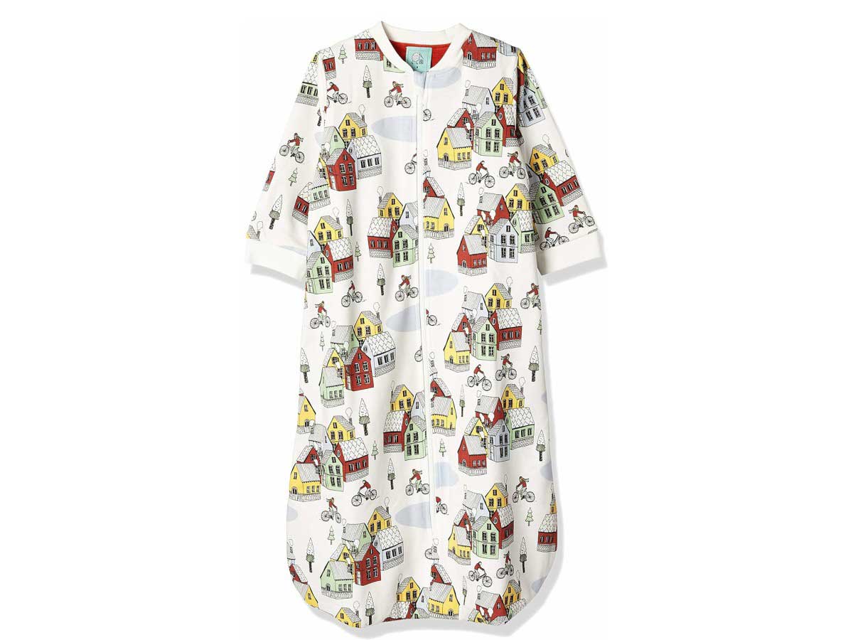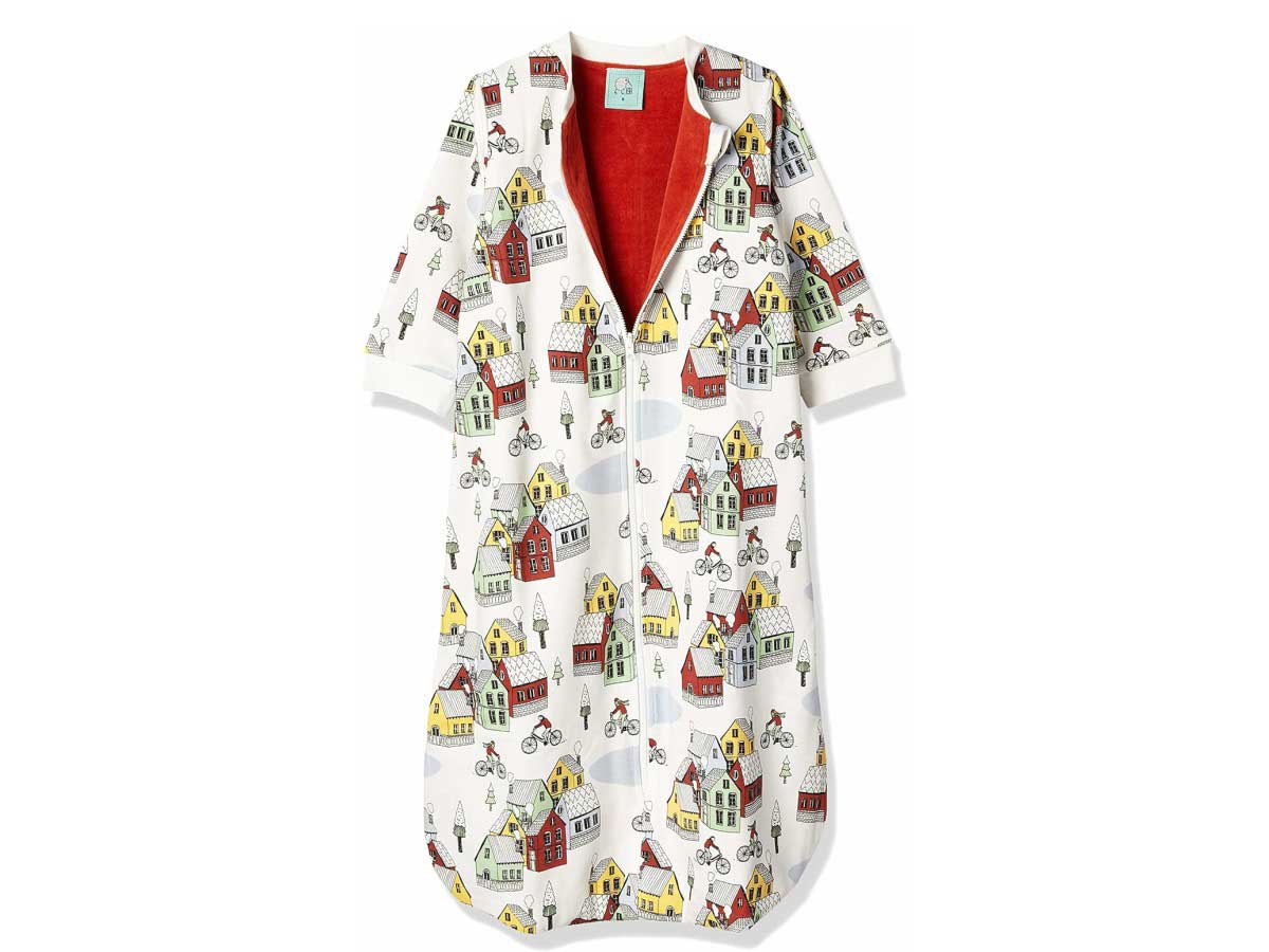 Außenmaterial: Jersey weiß bunt bedruckt mit einem Dorf im Winter