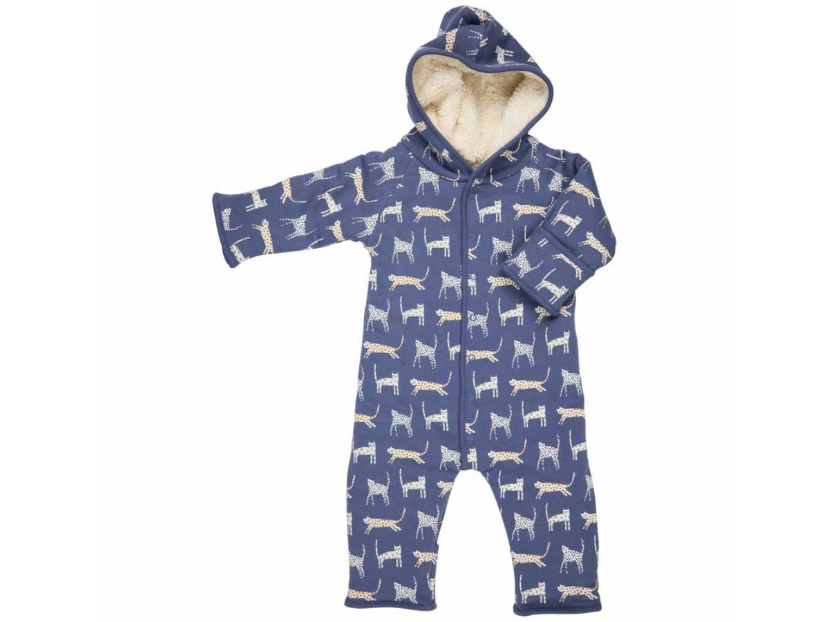 Farbe: blauviolett mit Alloverdruck Katzen in weiß, grau, safran