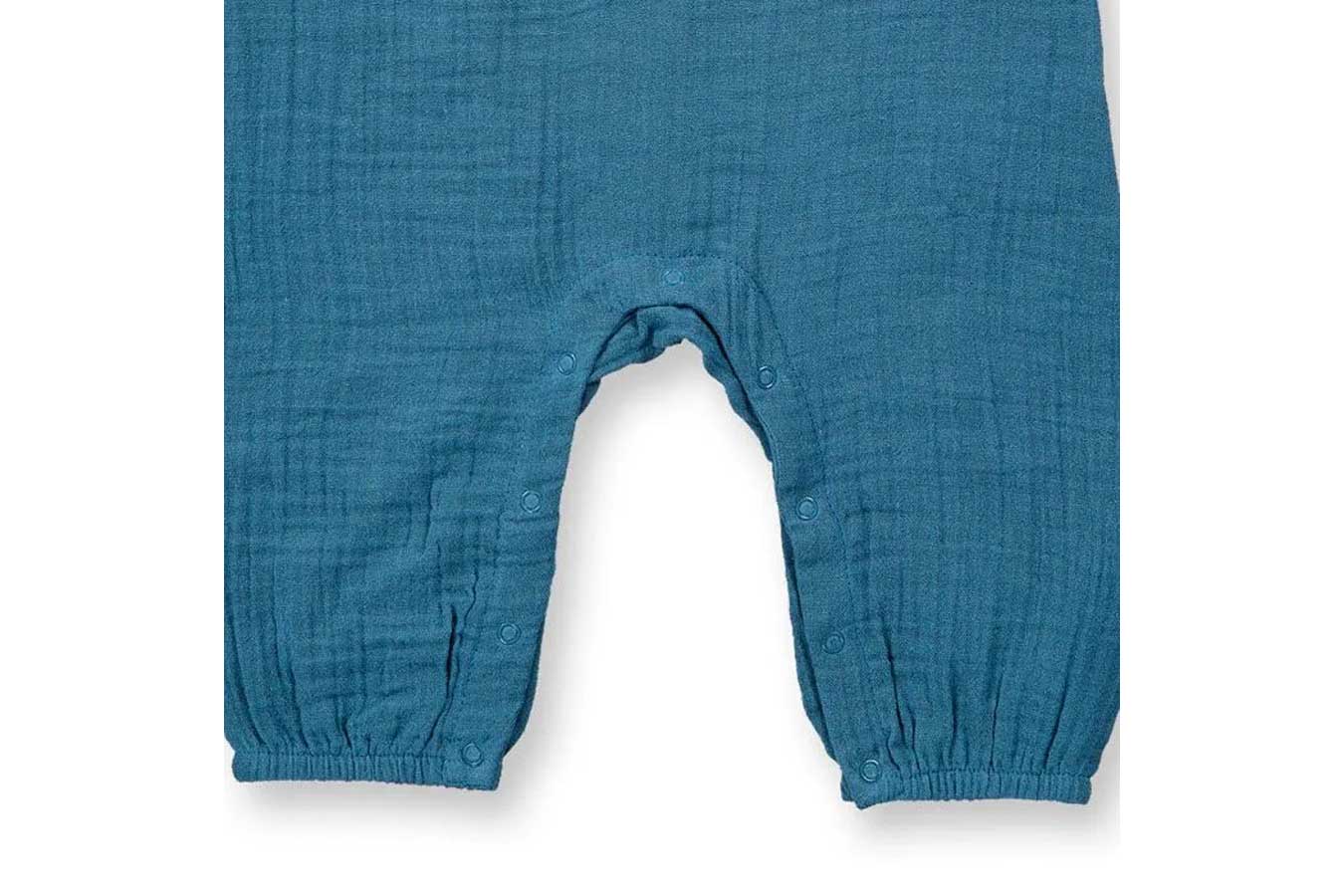 Unser Modell MARIS wird dein Baby lieben. Dafür sorgt der leichte Musselin-Stoff aus Bio-Baumwolle. Die lockere Passform und das atmungsaktive Material bieten viel Bewegungsfreiheit und liegen dabei sanft auf der Haut. Der Rundhalsausschnitt und die Knöpfe vorne erleichtern das Anziehen, während die nickelfreien Druckknöpfe im Schrittbereich schnelle Wickelpausen ermöglichen. Die elastischen Bündchen an den Beinen halten den Overall bequem am Körper deines Babys. Dank GOTS-Zertifizierung kannst du dir sicher sein, dass der Overall fair, giftfrei und nachhaltig hergestellt wurde.