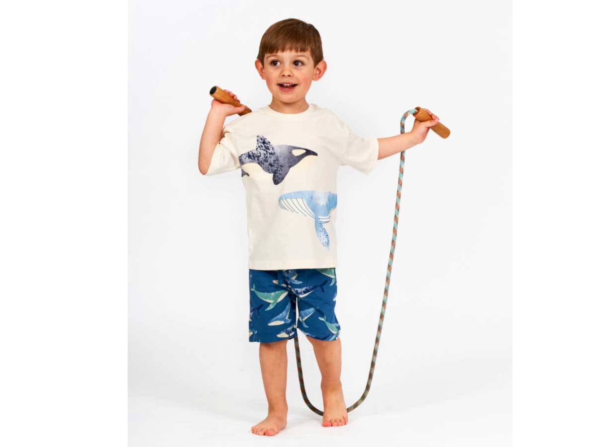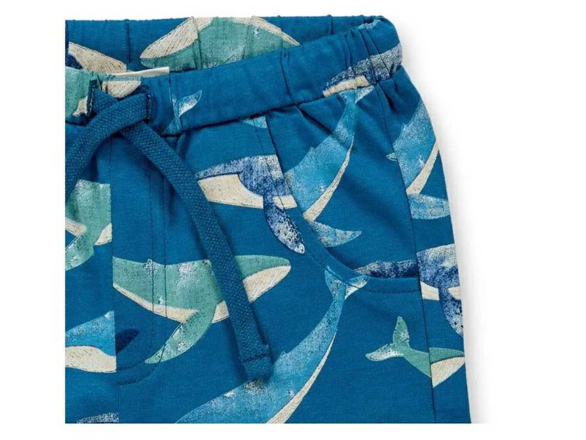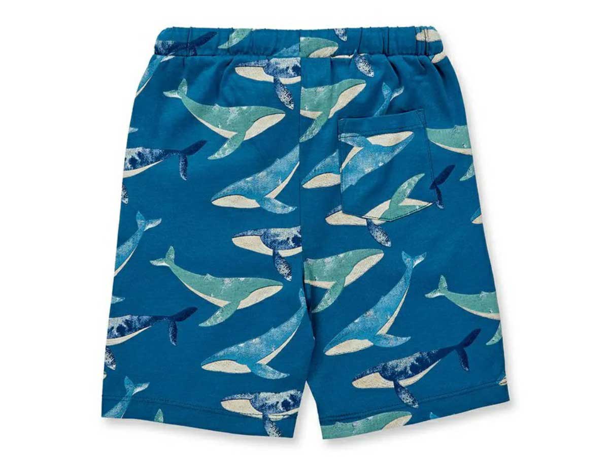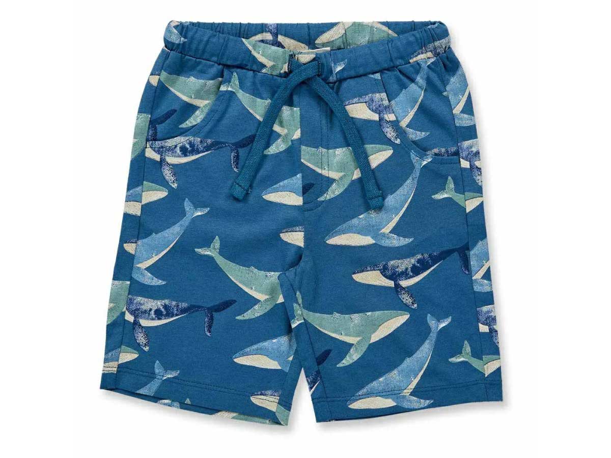 Mit seinem ausgefallenen Wal-Druck auf ozeanblauem Hintergrund ist das Modell KHAN das neue Lieblings-Teil im Kleiderschrank Ihres Kindes. Neben dem besonderen Design sorgt der feine Single Jersey Stoff aus 100% Bio-Baumwolle dafür, dass sich die kurze Hose angenehm weich auf der Haut anfühlt. Der elastische Taillenbund und die normale Weite schenken viel Bewegungsfreiheit. Super praktisch: In den Eingriffstaschen vorne und der Hosentasche hinten kann Ihr Kind Kleinigkeiten verstauen.
