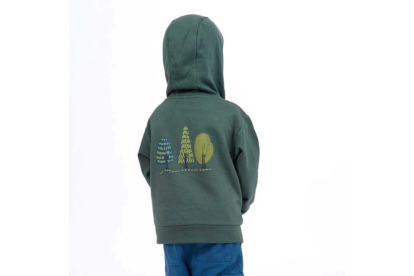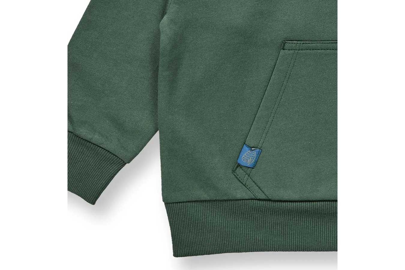 Für Entdeckungstouren draußen bietet unser Modell HAIOO eine kuschelig gefütterte Kapuze, die den Kopf zuverlässig vor Wind und Kälte schützt. Das große Baummotiv auf dem Rücken macht das dunkelgrüne Sweatshirt zu einem echten Blickfang. Im kastigen, weiten Schnitt können Kinder sich völlig frei bewegen – egal ob beim Klettern, Laufen oder Spielen. Die Bündchen an Ärmeln und Saum halten die Wärme dort, wo sie hingehört. Unser Modell HAIOO besteht aus weichem Sweatstoff aus 100% Bio-Baumwolle, der für ein angenehmes Tragegefühl sorgt.