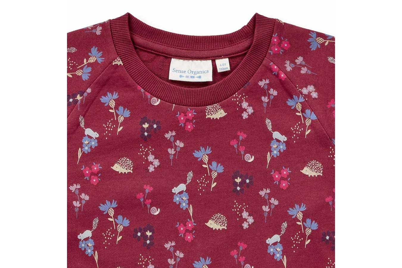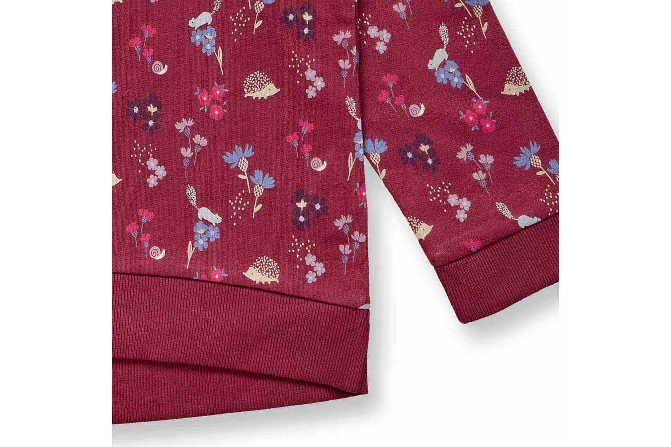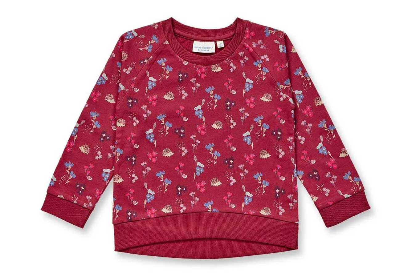 Mit dem niedlichen Igel- und Blumendruck auf weinrotem Hintergrund bringt unser Modell DENA Farbe in jede Garderobe. Die normale Weite schenkt deinem Kind Komfort für jedes Abenteuer. Dank der Bündchen an Ärmeln und Saum bleibt das Sweatshirt beim Spielen, Herumtollen und Entdecken an seinem Platz. Der Rundhalsausschnitt liegt angenehm am Hals und lässt sich einfach an- und ausziehen. Der weiche Sweatstoff aus Bio-Baumwolle sorgt für ein kuscheliges Tragegefühl auf der Haut und hält gleichzeitig warm. Dank der GOTS-Zertifizierung kannst du dir sicher sein, dass unser Modell DENA mit Rücksicht auf Mensch und Umwelt produziert wird – das schont nicht nur die Natur, sondern auch die empfindliche Kinderhaut.